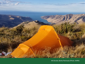 Designed for the New Zealand high mountain environment, the Aarn 2 Tent is optimised for high winds. With enough space for 2 mummy shaped air mats, the AT-2 tent has a door and vestibule on each side to give each occupant a separate entry and storage area.