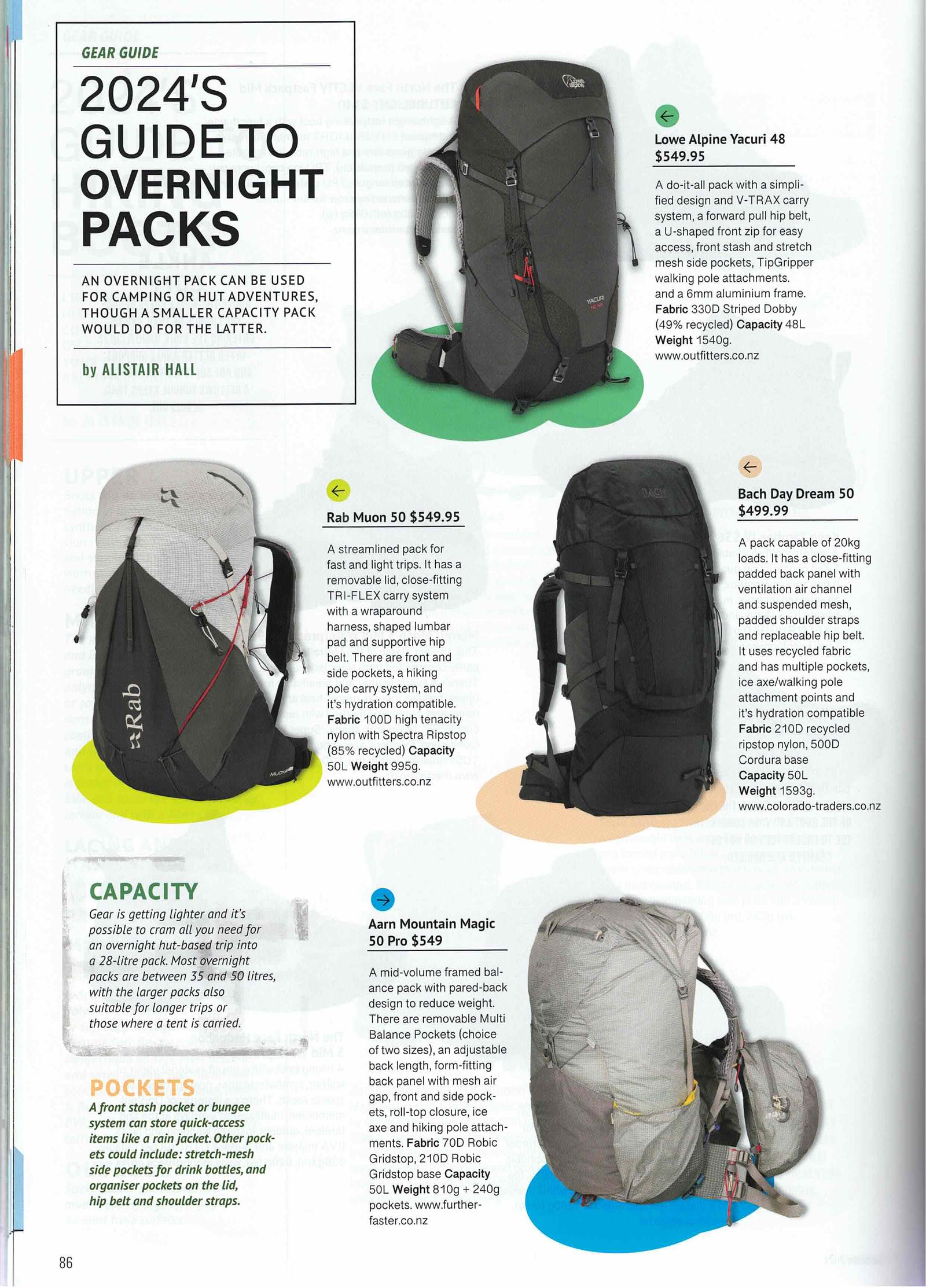 Our Mountain Magic 50 PRO was included in the Wilderness Magazine '2024's Guide to Overnight Packs.' (It was also included in the 2023 version too!)