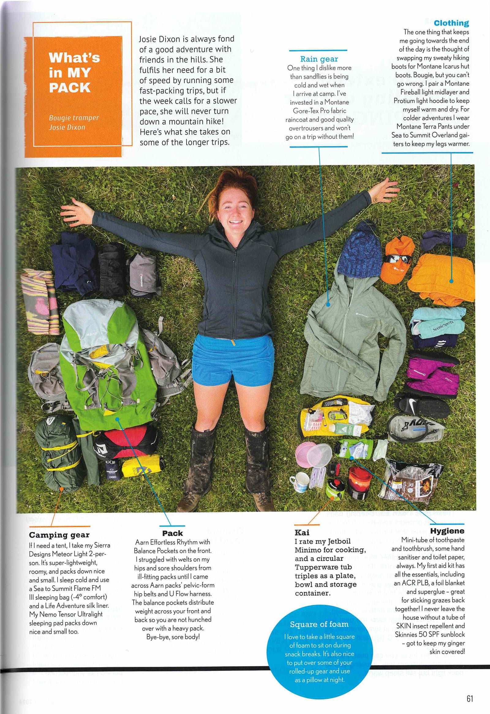 Our Effortless Rhythm pack was featured in Wilderness Magazine's 'What's in my pack' with Josie Dixon in March 2024.