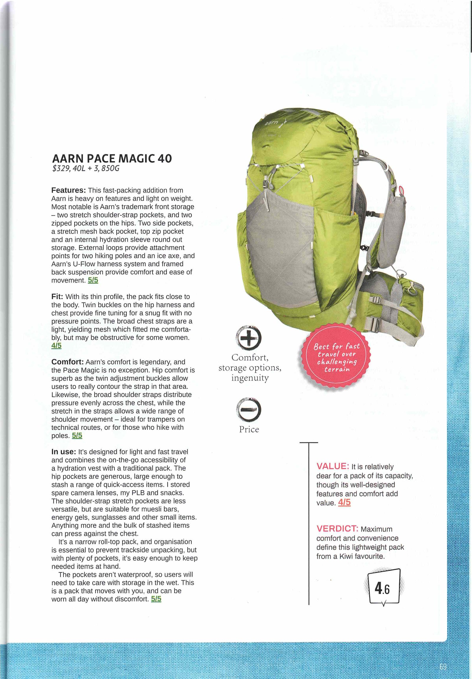 Our Pace Magic 40 Pack was reviewed in Wilderness Magazine (NZ) in October 2023.
