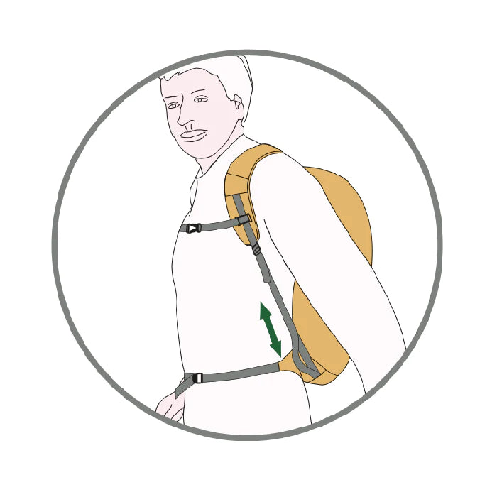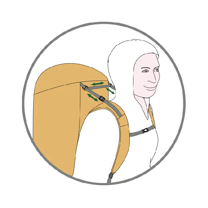 The top stabiliser straps are linked together by a web which slides freely through rings at the top of the pack when your shoulders twist relative to your hips (daypacks).