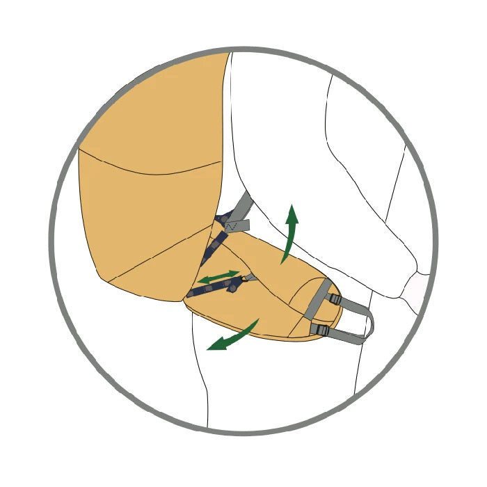 Once we balance the weight of your Aarn Balance Backpack around your centre of gravity by aligning the horizontal and vertical forces we need to connect to the harness, hip belt and Balance Pocket system to allow free movement in the body.